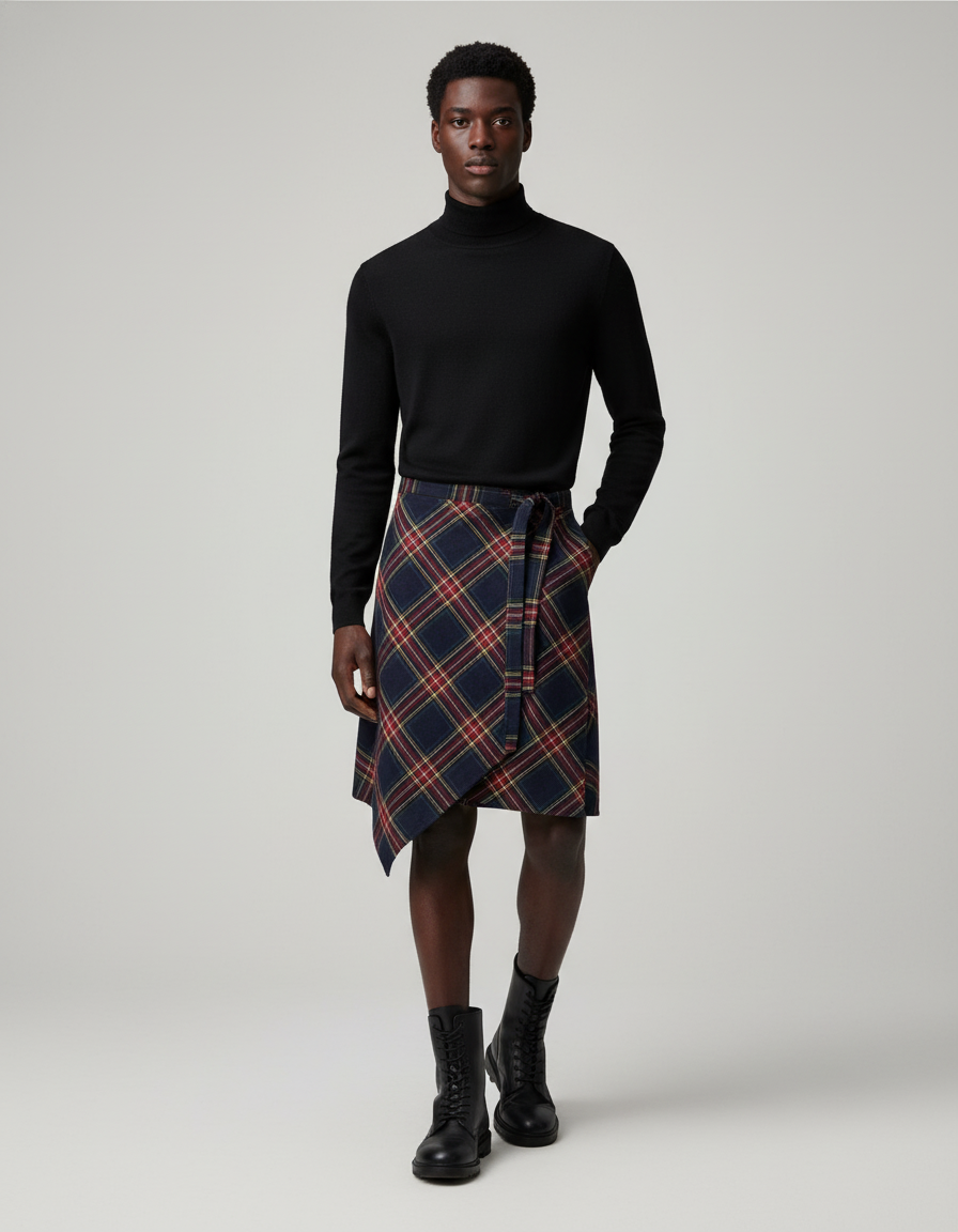 L'Élégance Avant-Gardiste : Jupe Homme À Carreaux Asymétrique Chic