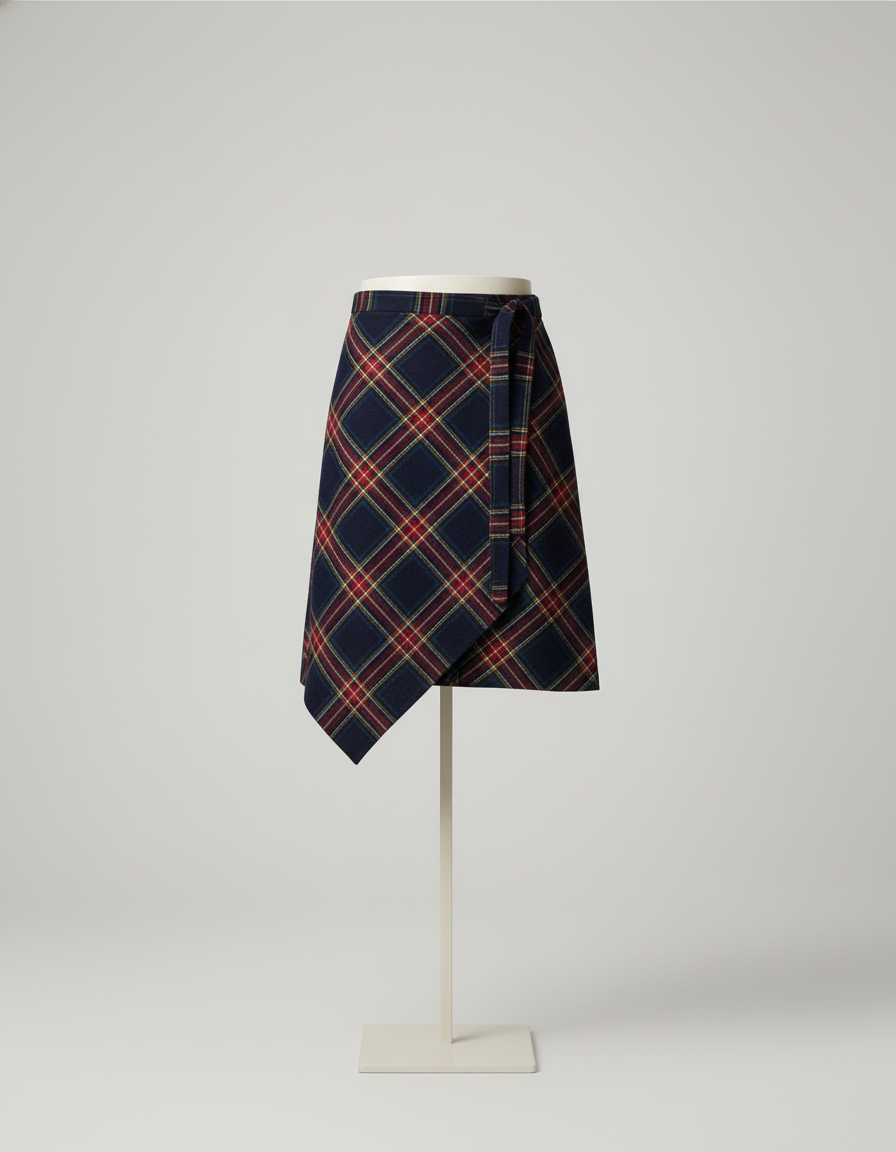 Façonnée dans une laine premium, cette jupe arbore un motif à carreaux riche, mariant des teintes profondes à des accents vibrants pour une esthétique à la fois classique et résolument moderne. Sa coupe asymétrique, signature de notre savoir-faire, crée une silhouette dynamique et contemporaine, loin des conventions. C'est la promesse d'une allure qui ne laissera personne indifférent, une fusion parfaite entre tradition et modernité pour une garde-robe d'exception qui célèbre l'individualité.
