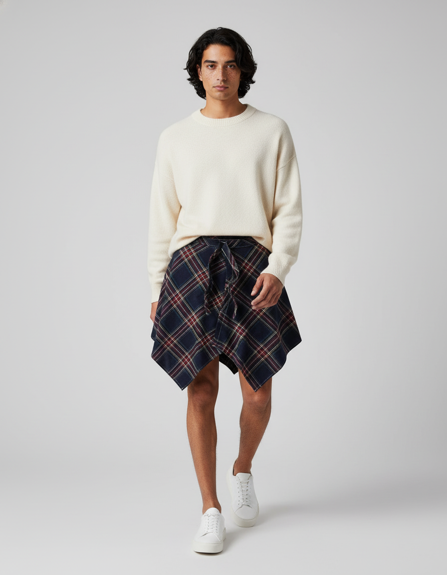 Jupe Homme Asymétrique à Carreaux : Confort et Audace au Quotidien