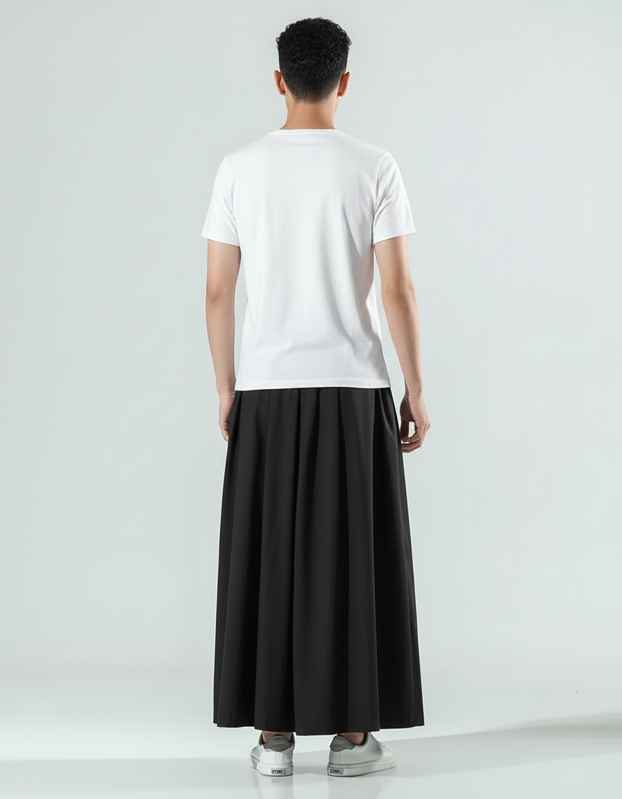 Découvrez notre jupe ample noire fluide pour homme, alliant style moderne et confort exceptionnel.