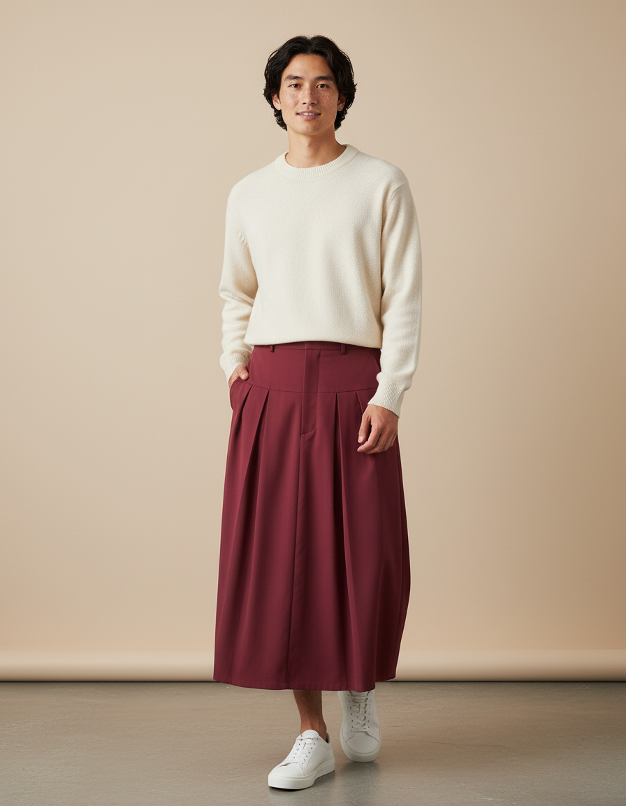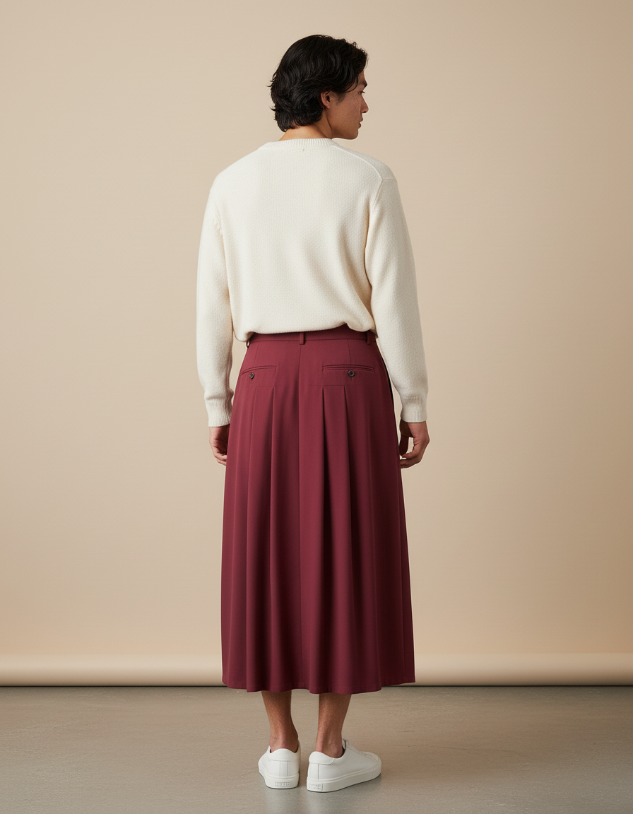 Jupe Homme Bordeaux Plissée Fluide : L'Élégance Redéfinie
