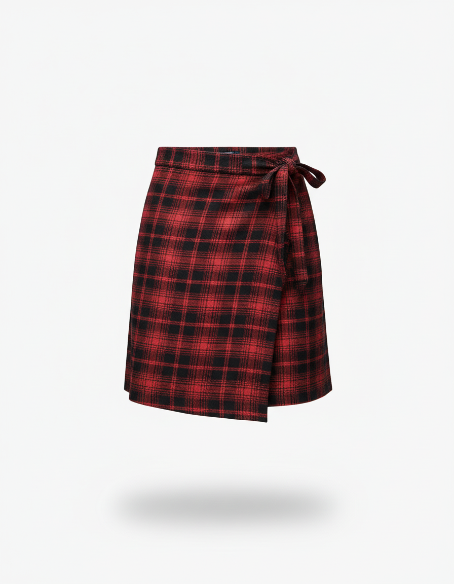 L'Audace Redéfinie : Jupe Asymétrique en Laine Carreaux Rouge