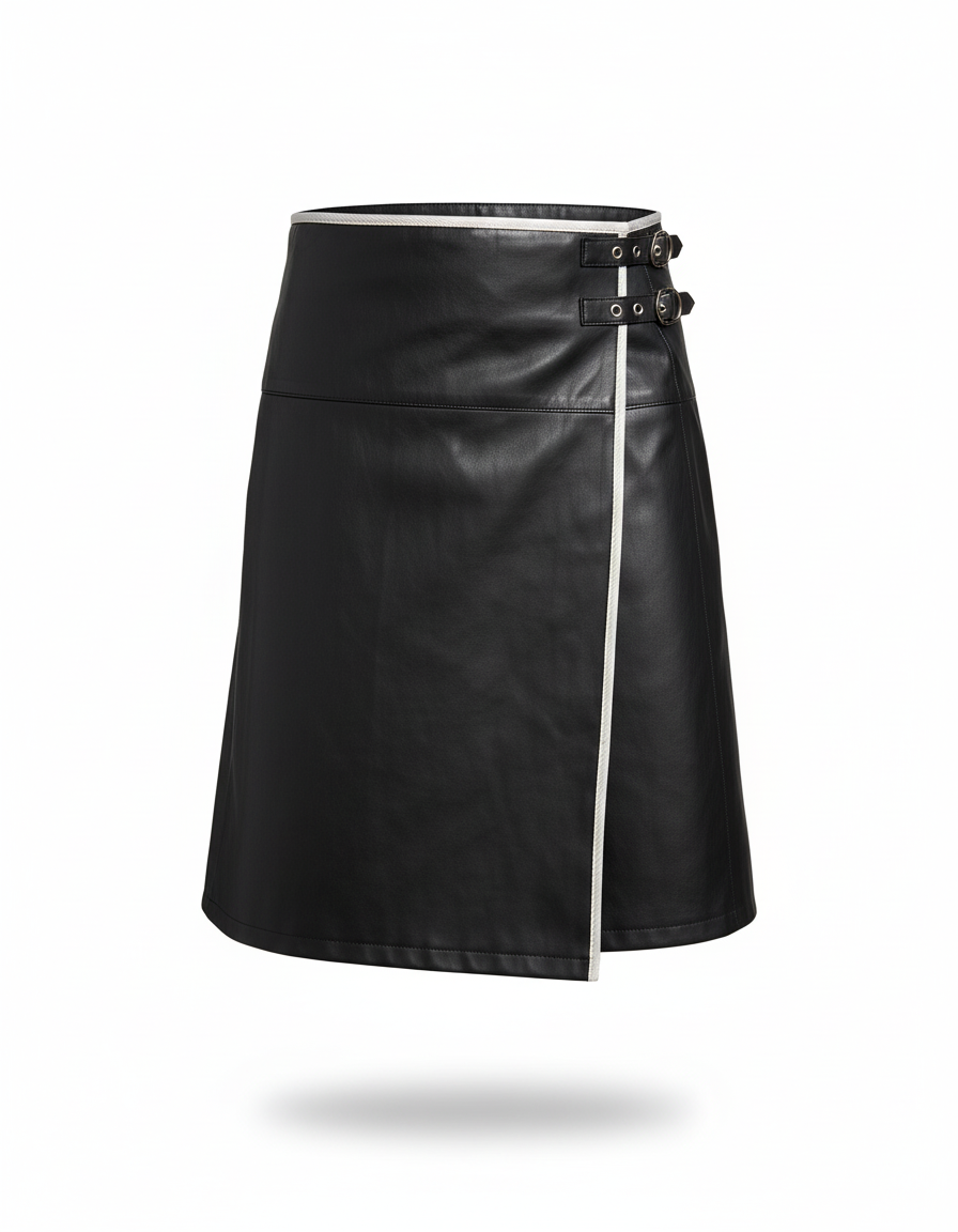 Pourquoi choisir la Jupe Homme Cuir Noir Bande Blanche Décontractée