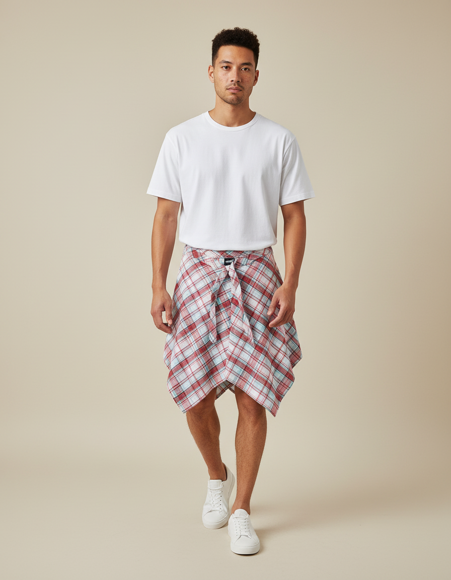 La Jupe Homme Écossaise Irrégulière : L'Audace du Luxe Décontracté