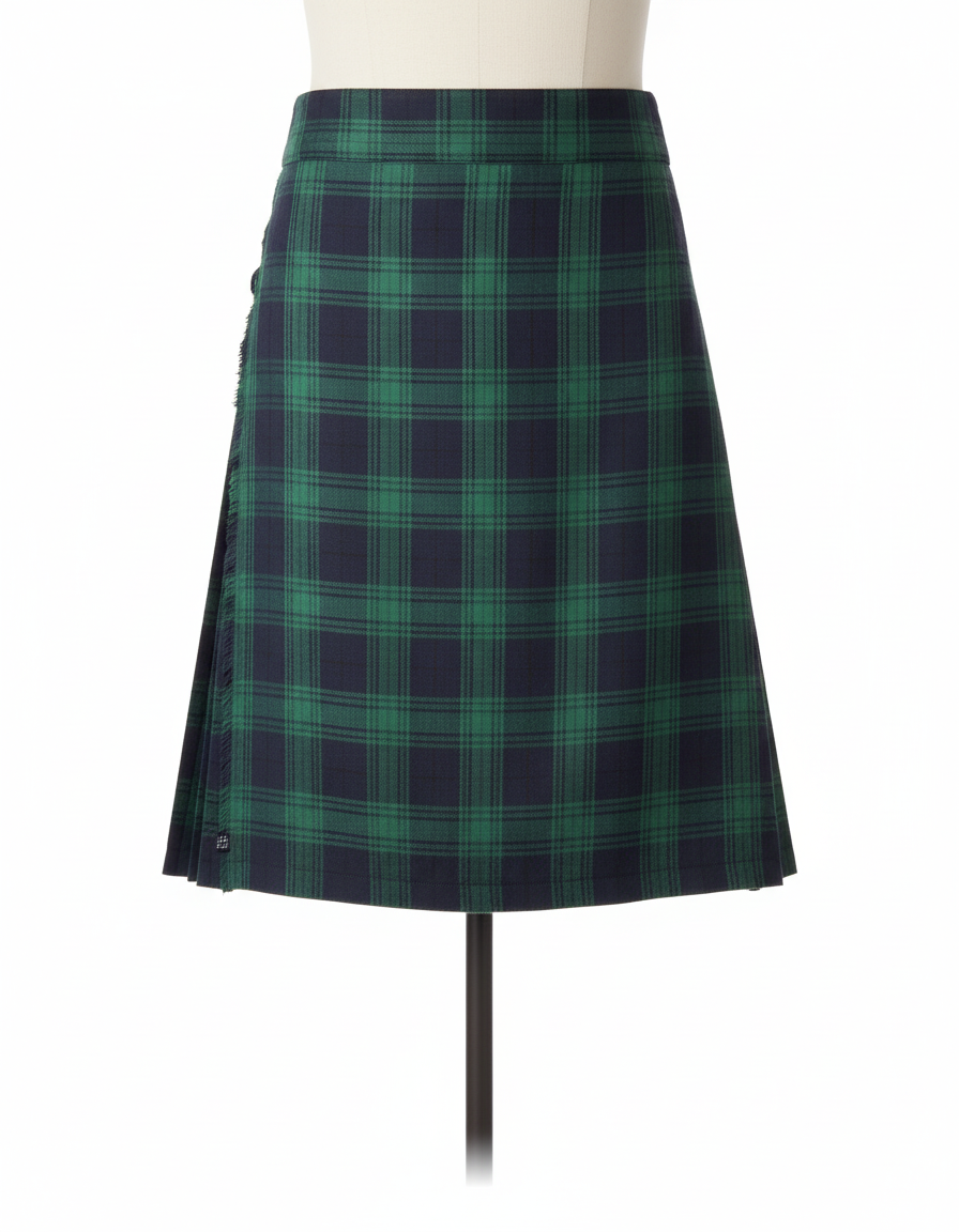 Ce qui distingue cette jupe, c'est l'alliance parfaite d'une laine de qualité supérieure et d'un art tailleur irréprochable. Chaque pli est méticuleusement travaillé pour assurer une tenue impeccable et un mouvement fluide, tandis que le motif tartan vert marine intemporel offre une richesse visuelle unique. Idéale pour le quotidien comme pour les occasions spéciales décontractées, elle s'adresse à l'homme moderne qui recherche une pièce versatile, durable et empreinte d'une histoire, sans jamais compromettre le luxe et le bien-être.