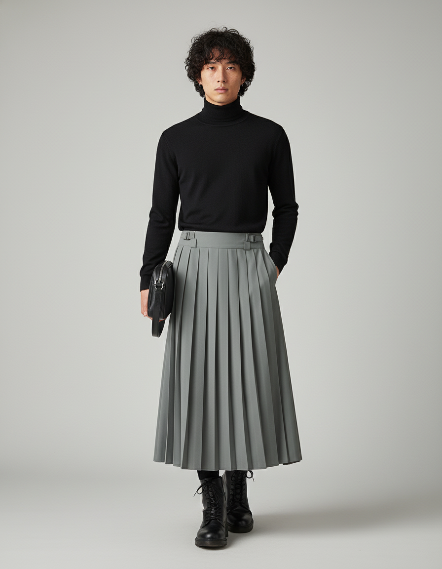 Jupe Plissée Homme Grise : L'Éloge de la Sobriété et du Mouvement