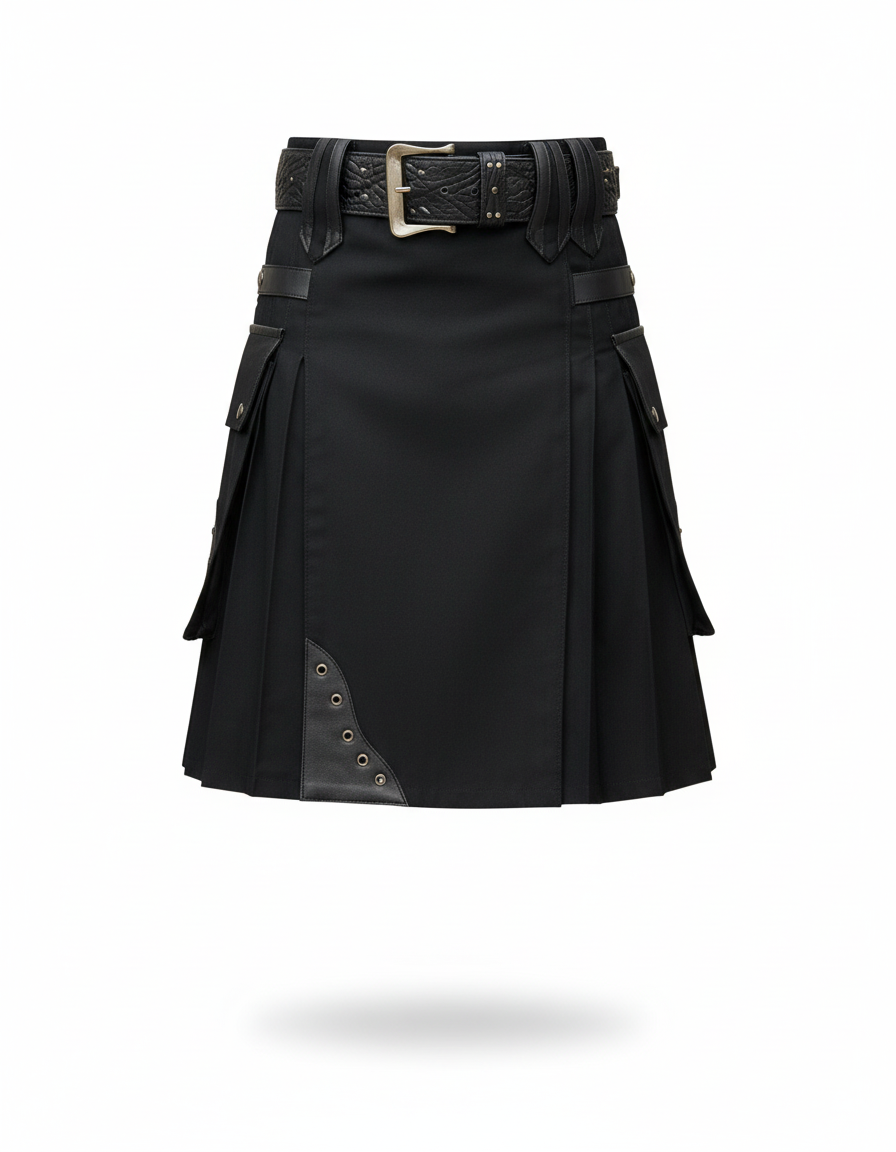 Ce qui la distingue ? L'harmonie parfaite entre la tradition du plissé et l'esprit rebelle du style rock, sublimée par des détails soignés et une coupe impeccable. Sa couleur noire intemporelle et son tissu résistant en font un investissement durable dans votre garde-robe. Plus qu'une simple jupe, c'est une invitation à réécrire les codes de la mode masculine, offrant une liberté de mouvement et une allure distinctive qui captiveront tous les regards. Adoptez cette pièce unique et redéfinissez l'élégance à votre manière.