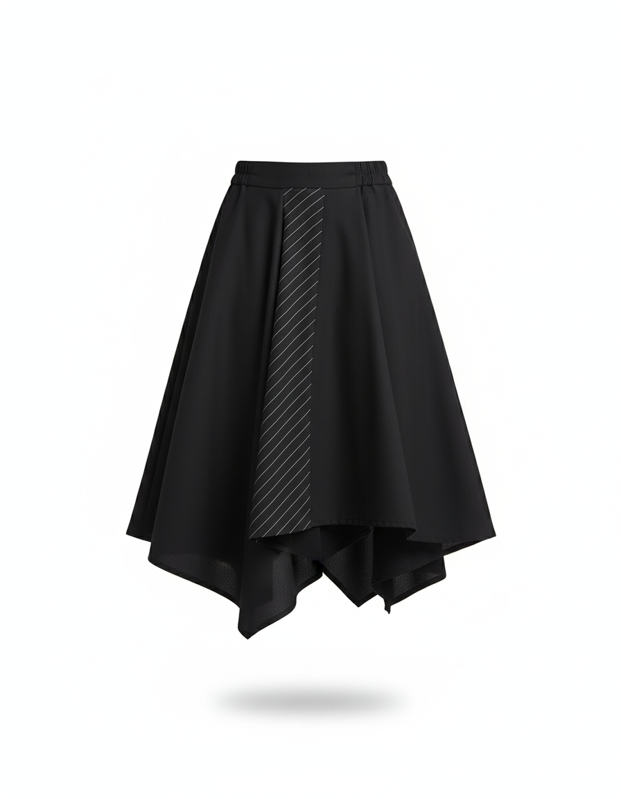 Ce qui la différencie ? Sa coupe architecturale, magnifiée par un panneau subtilement rayé, fusionne l'art de la haute couture avec la praticité du prêt-à-porter de luxe. Le polyester choisi pour sa fluidité et sa tenue impeccable assure une élégance sans effort, tandis que la couleur noire intemporelle garantit une polyvalence absolue avec votre garde-robe. Ne vous contentez plus de suivre les tendances, créez-les avec cette jupe qui incarne le luxe moderne et concret.