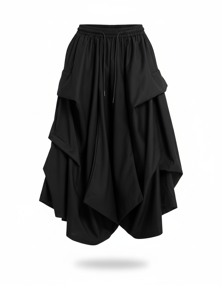 Ce qui rend cette jupe véritablement unique, c'est sa conception innovante. Le polyester haut de gamme assure une tenue impeccable et une fluidité remarquable, tandis que le plissé ample crée un volume structuré et captivant. Loin des conventions, son style streetwear est élevé par une confection de précision, la transformant en un vêtement polyvalent, aussi à l'aise dans un cadre urbain décontracté que pour une occasion plus sophistiquée. Elle est la preuve que le confort peut rimer avec une sophistication sans effort et une originalité affirmée.