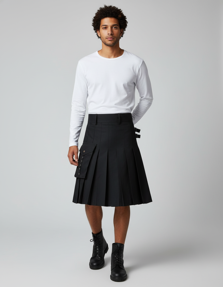 Pourquoi choisir la Jupe Homme Noire Plissée Décontractée Urbaine