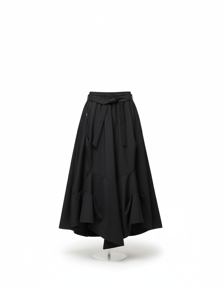 Façonnée dans un polyester plissé de haute qualité, cette jupe noire incarne le luxe moderne par son design innovant et sa fluidité exceptionnelle. Ce qui la distingue, c'est l'équilibre parfait entre sa structure contemporaine et la délicatesse de ses plis, créant un volume maîtrisé qui danse à chaque pas. Loin des conventions, elle est la signature d'une garde-robe pensée pour ceux qui valorisent l'esthétique épurée et la fonctionnalité discrète, avec une taille élastique pour un ajustement parfait.