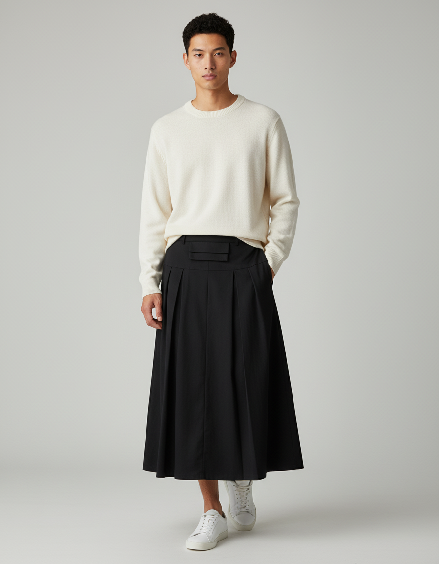 La Jupe Homme Noire Plissée Fluide Aérienne : L'Élégance au Quotidien