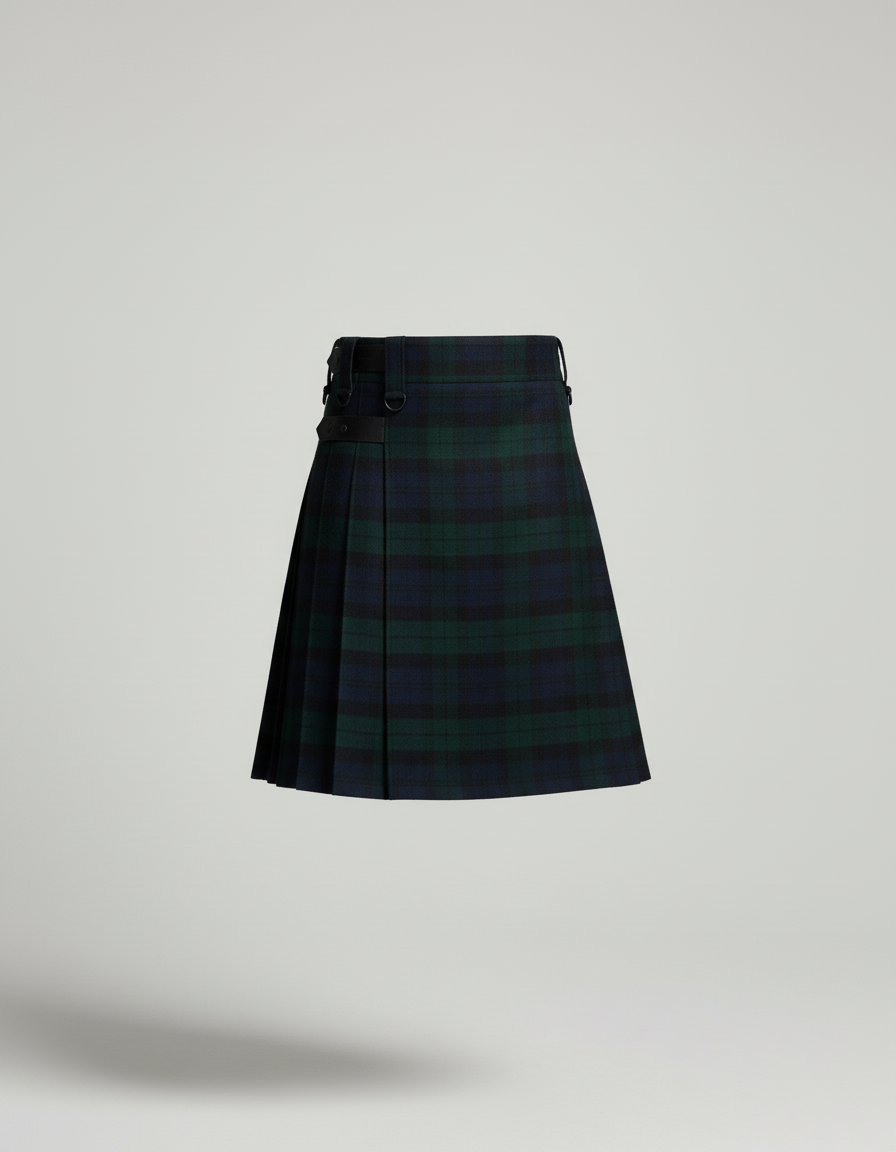 Façonnée dans une pure laine vierge, chaque plissé est méticuleusement travaillé pour offrir une tenue impeccable et un mouvement fluide. Le motif tartan vert, intemporel et riche en histoire, est rehaussé par une confection haut de gamme, garantissant une durabilité exceptionnelle et un confort inégalé. Ce n'est pas seulement une jupe, c'est une déclaration de luxe discret et d'authenticité. Elle se démarque par sa qualité irréprochable et son caractère unique, offrant une pièce maîtresse qui réinvente le chic masculin avec audace et distinction.